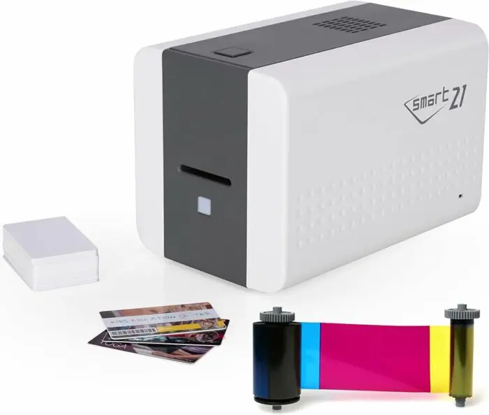 The SMART-21 is perfect for beginners on a budget with a low print volume. Its straightforward hand-fed card feeder, lightweight build, and adaptability make it perfect for printing Corporate IDs, Access Badges, Membership Cards, and more. Don’t forget eXpress badging provides 6 month free use of our cloud-based Veonics Portal Badge printing software, including installation and training!