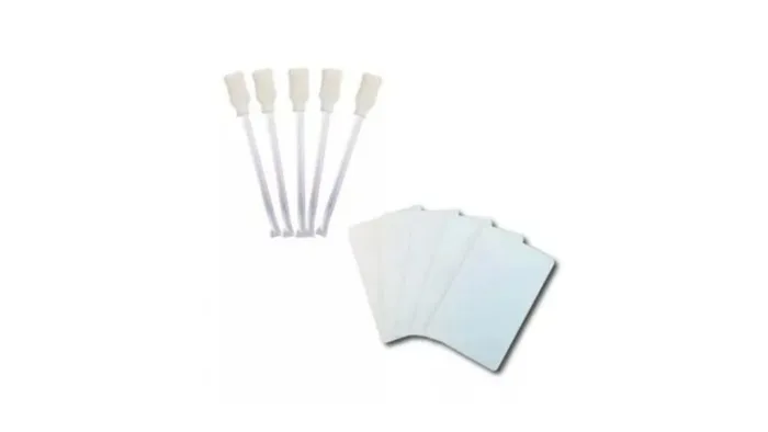Designed for Kanematsu 201+ retransfer printers, this kit contains 10 sticky cleaning cards and 4 cleaning wands. It helps maintain clean rollers and internal components, preventing print defects and prolonging printer performance.